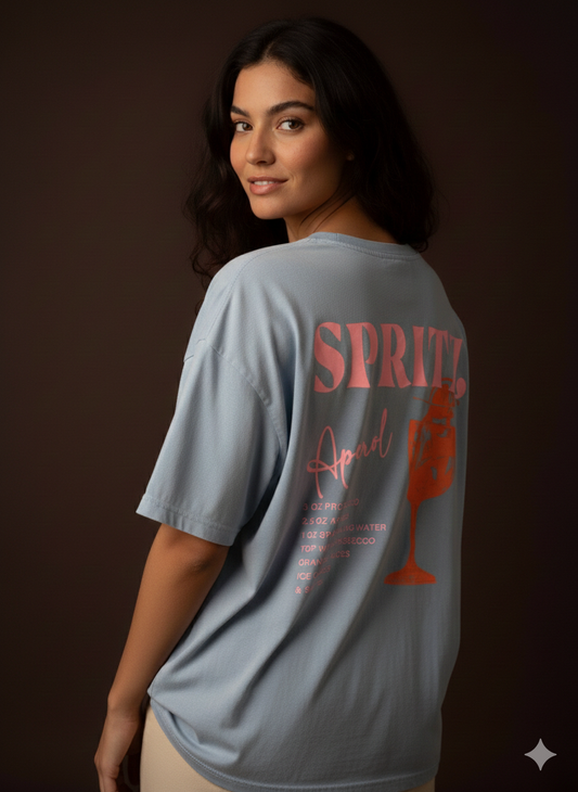 Damen T-Shirt Baumwollshirt mit Motiv Aperol Spritz in Hellblau