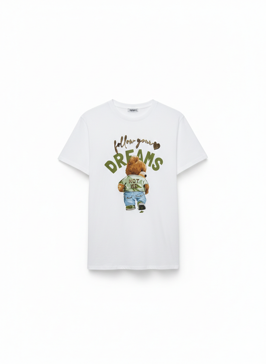 Damen T-Shirt in weiss Baumwollshirt mit Print Bär Tasche im Mund