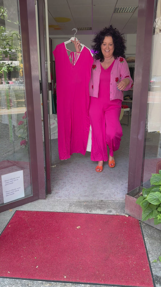 Boho Sommerkleid Damen – Langes Maxikleid Pink Orange (38-42)