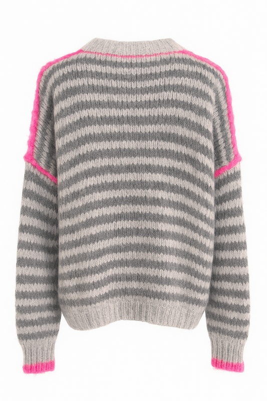 gestreifter Kuschel-Strickpullover mit Neon-Detail in 2 Farben