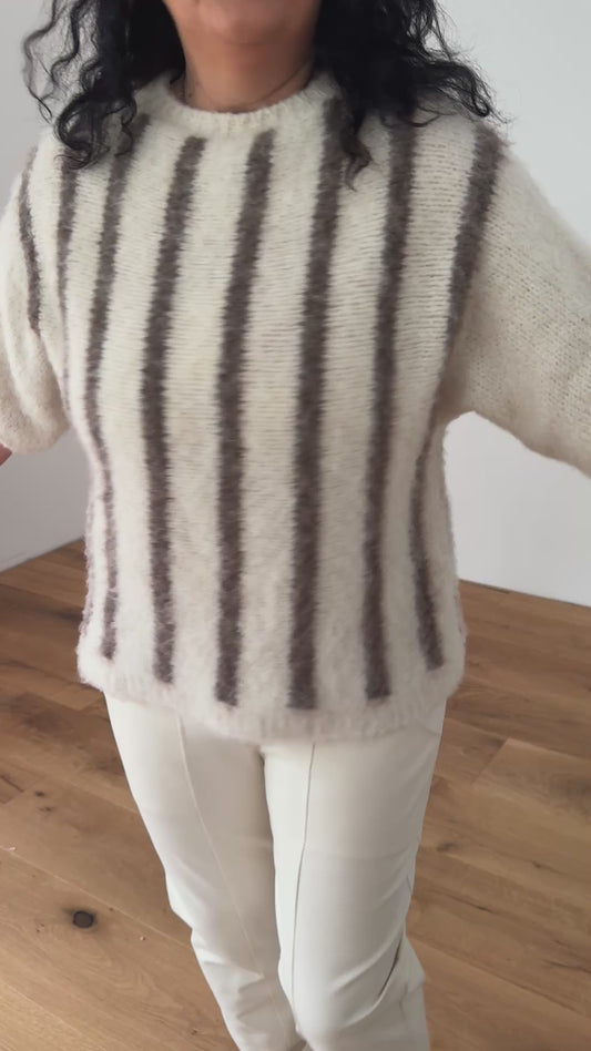 Pullover „Varsity Glam“ – Creme/Schwarz