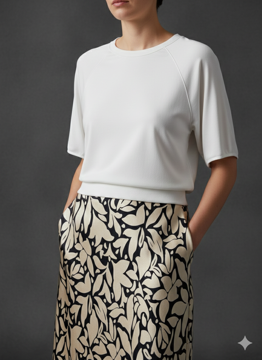 Damen Midirock Schwarz mit Blumenmuster – Eleganter Rock mit elastischem Bund