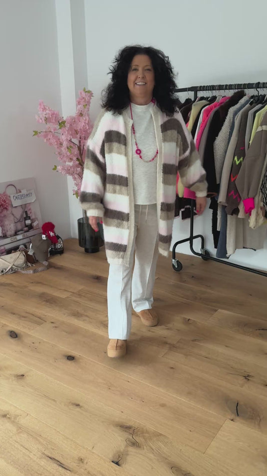 Kuschel-Cardigan in Braun, Rosa und Weiß 🤎