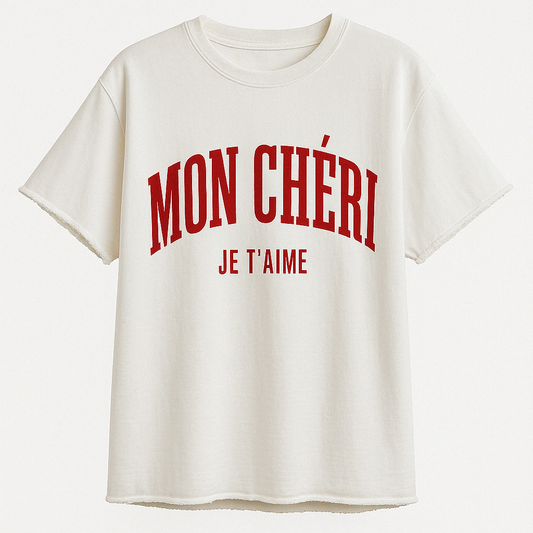 Dames sweatshirt met korte mouwen van katoen – Wit met Mon Cherie-motief