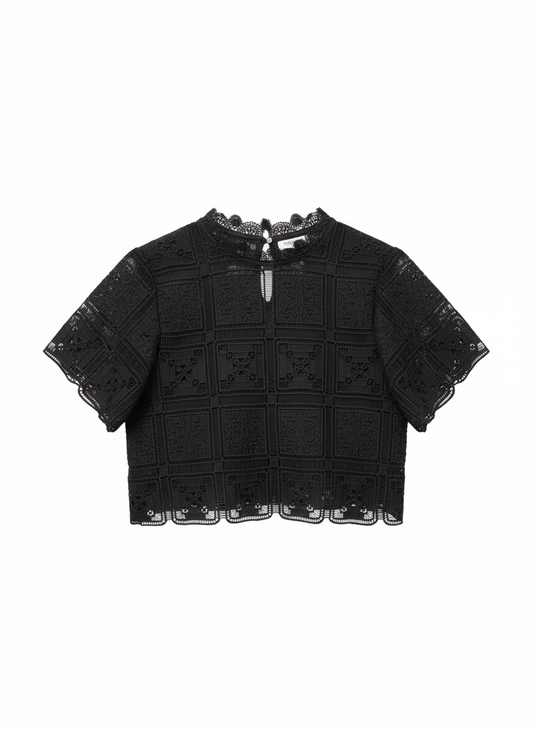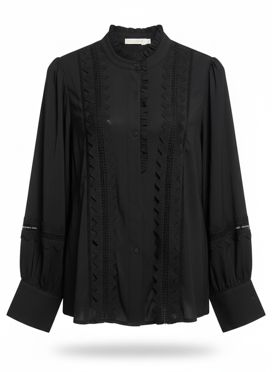 Kanten blouse met opstaande kraag