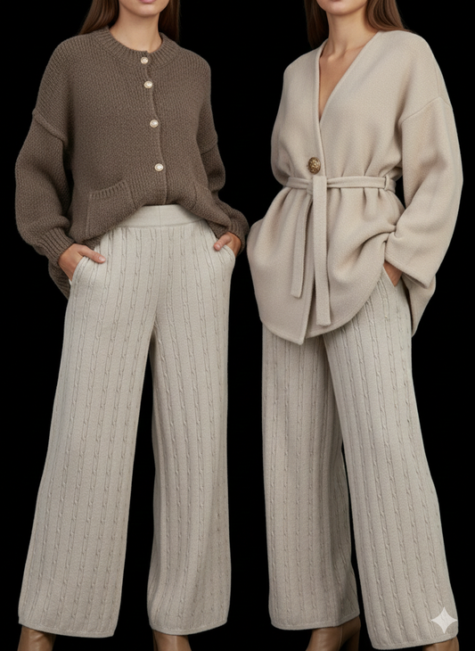 Damesbroek met een wijde pasvorm in een zachte velourslook.