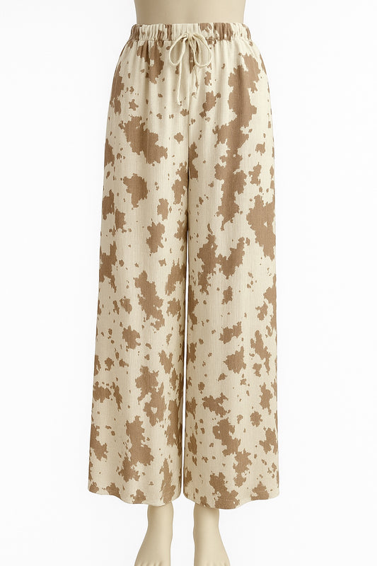 Damesbroek met wijde pijpen en print in beige – zacht en soepel vallend