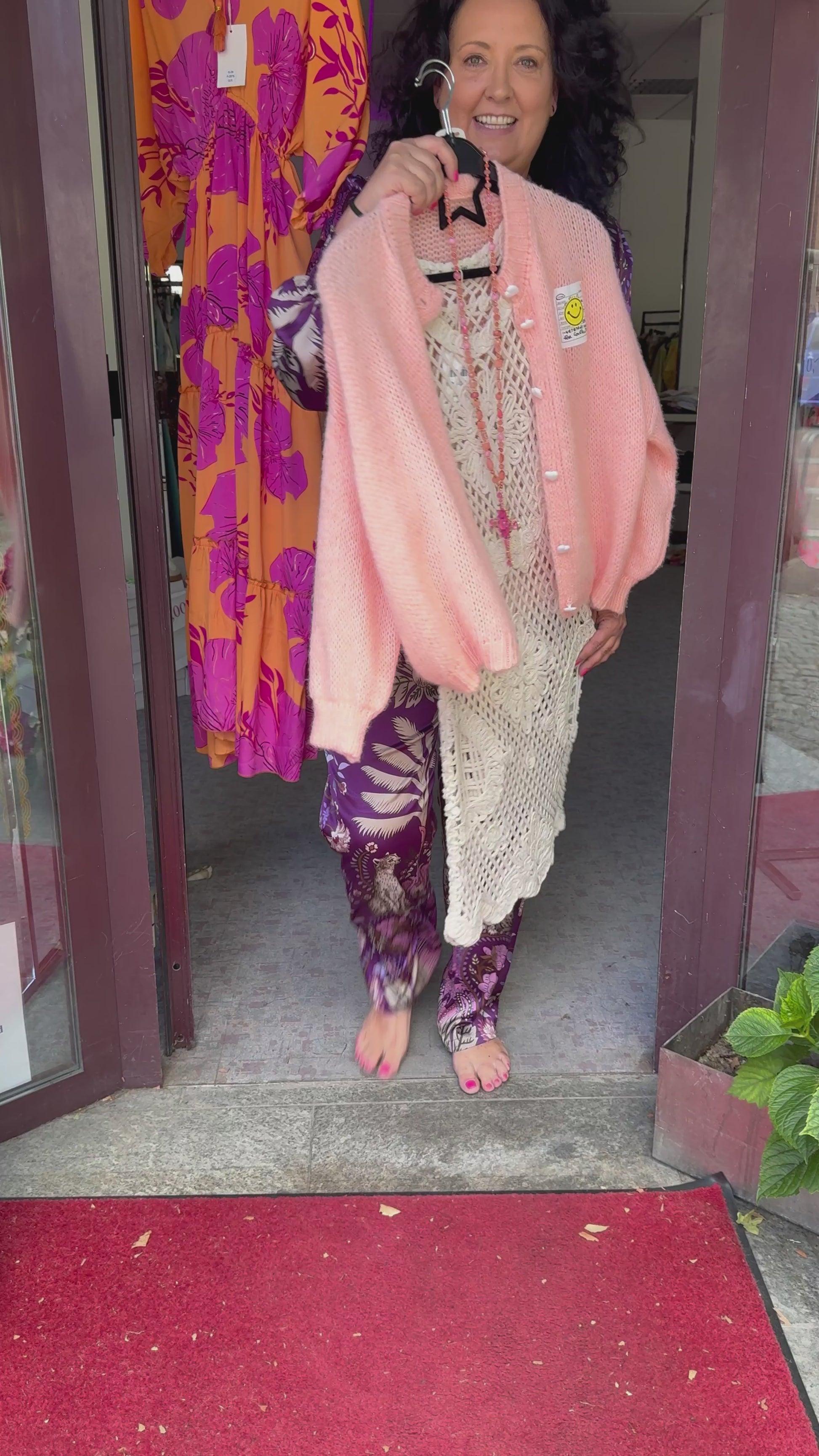 Dit schattige vest is de belichaming van knusse elegantie! In een zachte abrikooskleur geeft het elke outfit een frisse, vrolijke uitstraling. De hartvormige knoopjes en de geborduurde smiley met de tekst "Take It Easy" voegen speelse details toe. Ideaal voor de overgangsperioden, gezellige laagjeslooks of als opvallend item voor elke dag.