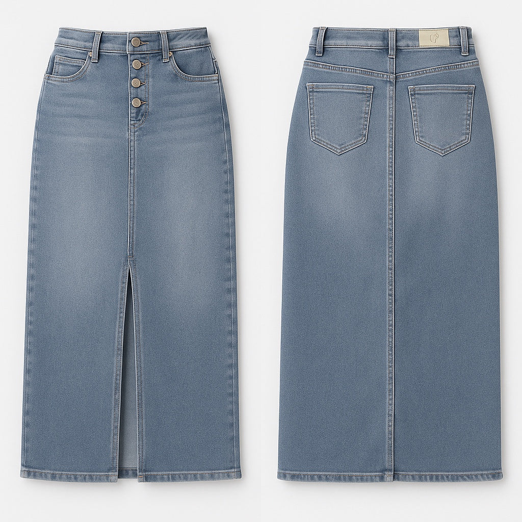Spijkerrok met split aan de voorkant – Midi spijkerrok