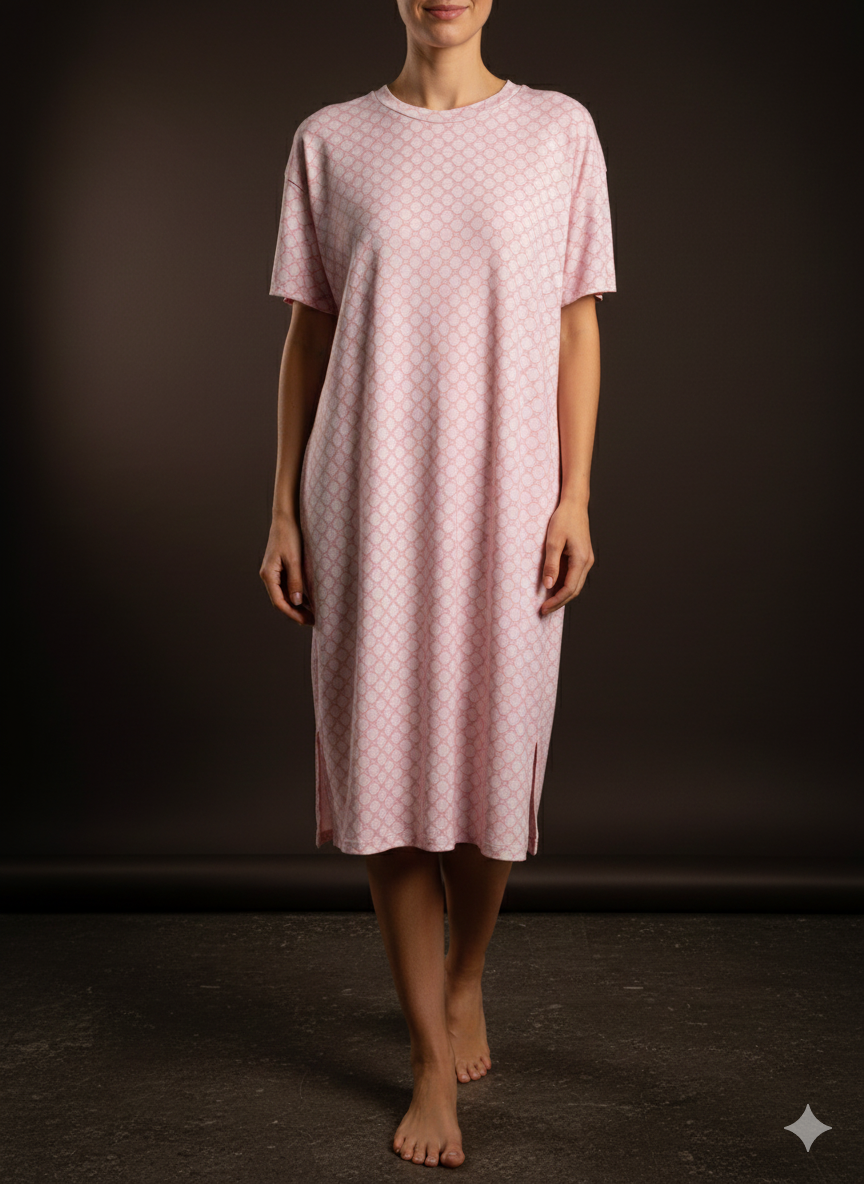 Een losvallende jurk met een geometrisch patroon en uitzonderlijk draagcomfort. De soepelvallende mix van viscose, polyester en elastaan zorgt voor optimale bewegingsvrijheid en een prachtige valling. Verkrijgbaar in maat 36 tot en met 42 , ideaal voor dagelijks gebruik, vrijetijdsactiviteiten en vakanties – eenvoudig, modern en comfortabel.