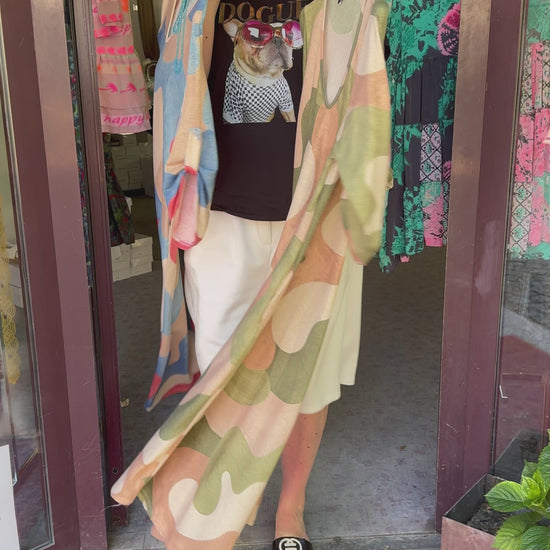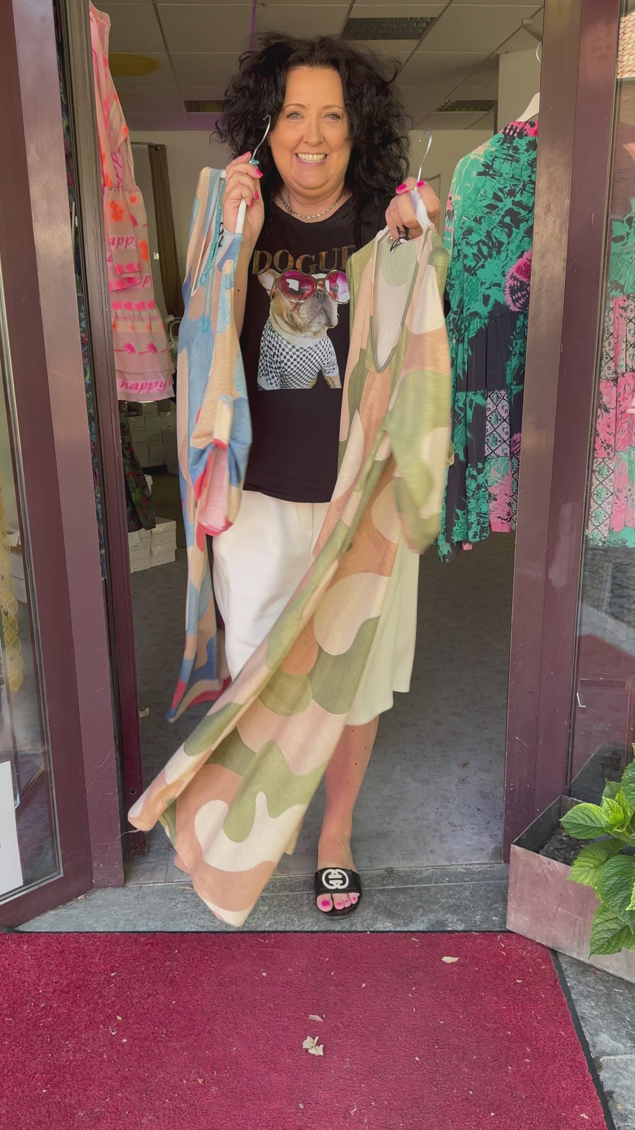 De unieke, abstracte print in warme groentinten maakt van elke jurk een echte blikvanger. Dankzij de soepele snit valt de jurk prachtig en is hij geschikt voor maat 38 tot en met 42.