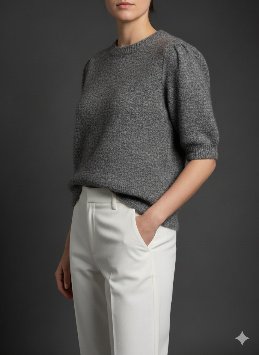 Deze elegante zwarte trui met korte mouwen combineert tijdloze stijl met een vleugje moderne flair. Gemaakt van hoogwaardige, zachte gebreide stof, biedt deze trui uitzonderlijk comfort en een flatterende pasvorm. De subtiele pofmouwen geven een vrouwelijke touch, waardoor het een veelzijdig kledingstuk is voor diverse gelegenheden.