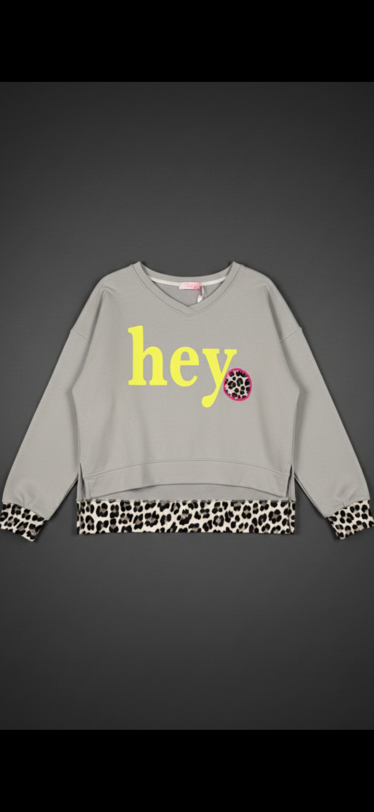 Een statement item voor iedereen die van positieve vibes houdt! De "Hey Wildheart" sweater combineert casual comfort met een vleugje wildheid. De opvallende neongele "hey" print wordt perfect aangevuld door het luipaarddetail in de letters β een look die direct de aandacht trekt.
