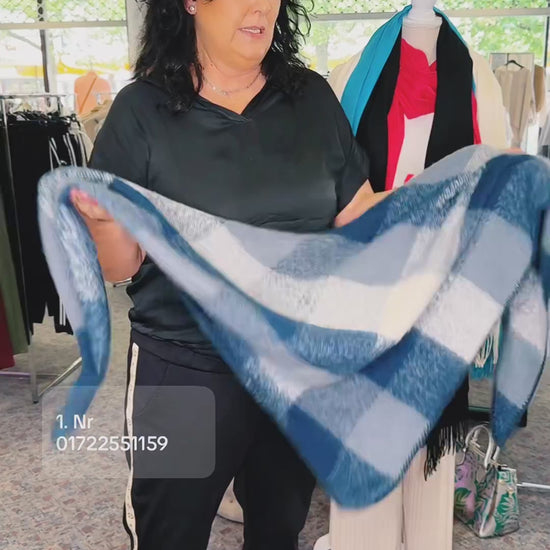 De knuffelbare sjaal in een prachtige blauwe kleur is zacht en comfortabel om de nek te dragen; hij is gemaakt van 80% viscose en Lana-wol.
