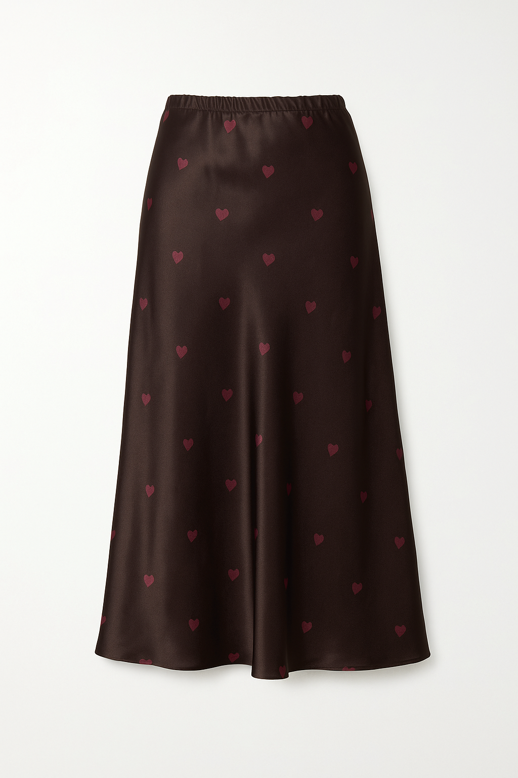 Satinrock in Dunkelbraun mit zartem Herzmuster
