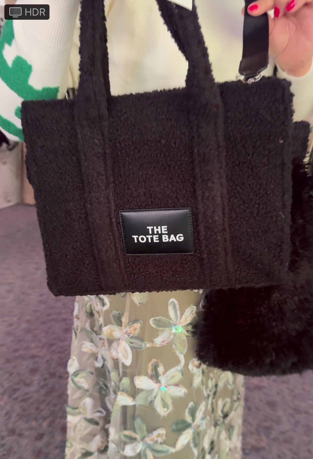 Die Cozy Teddy Tote ist der perfekte Begleiter für kalte Tage und sorgt mit ihrem weichen Teddyfell für einen stylishen Look. Diese moderne Tasche aus hochwertigem Teddy-Material bietet nicht nur einen angenehmen Tragekomfort, sondern auch ausreichend Platz für all deine Essentials. Mit ihrem minimalistischen Design und dem auffälligen Label "The Tote Bag" auf der Vorderseite setzt sie ein modisches Statement und lässt sich zu zahlreichen Outfits kombinieren – ob casual oder schick.