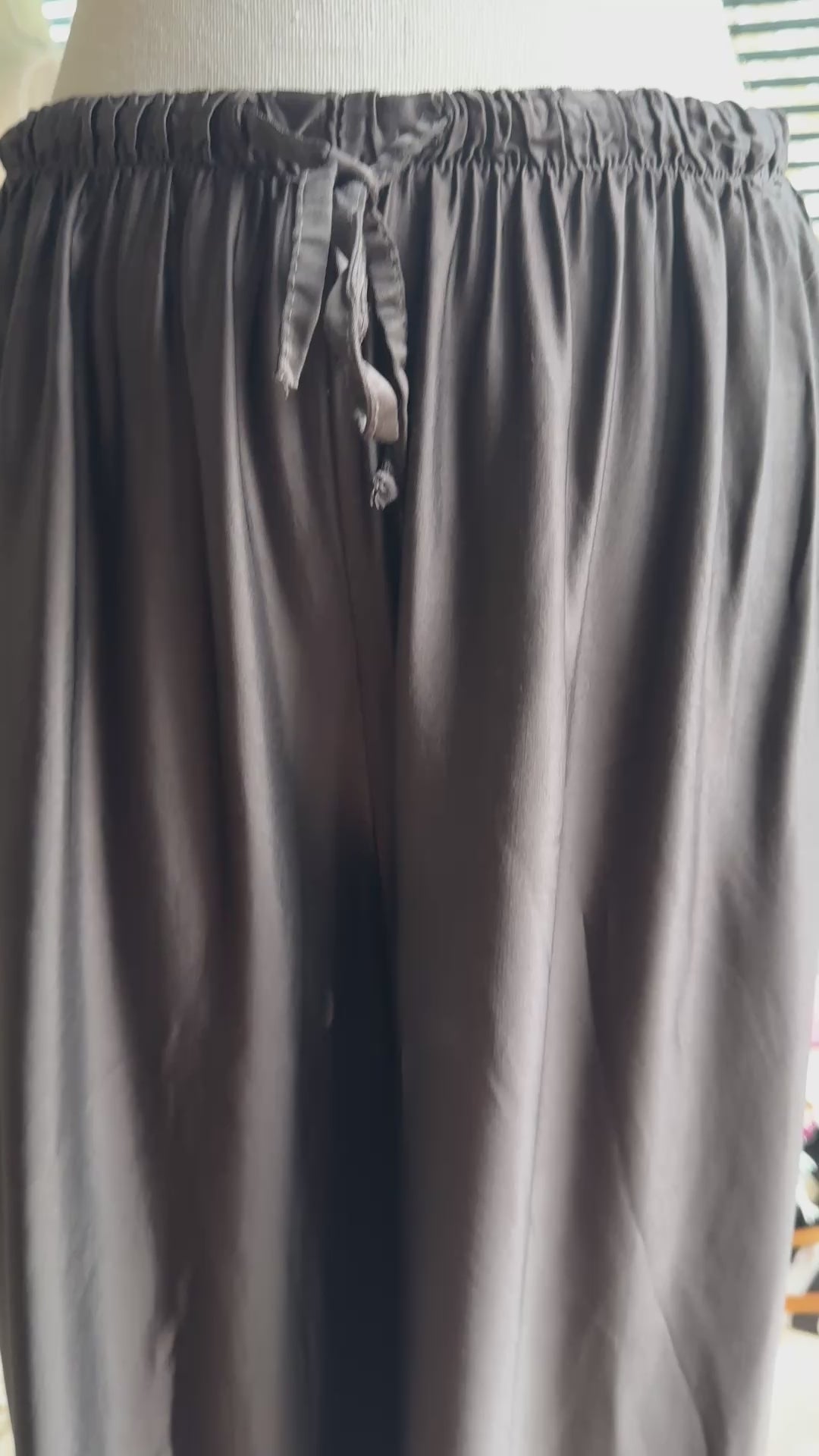 Zeilos schöne weite Viskosehose mit weitem Bein und Gummizug sowie Kordelzug, damit könnt ihr sie in vielen Größen tragen.