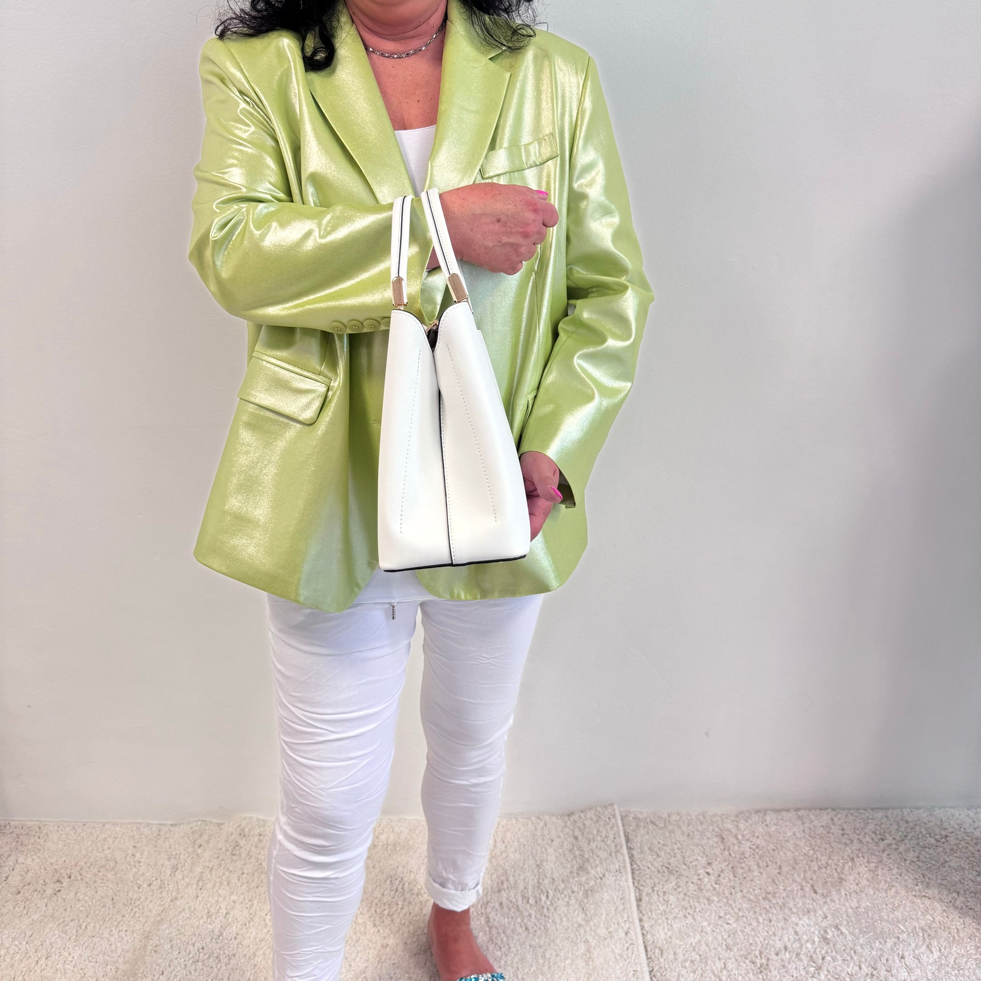 Styling-Tipp: Diese elegante weiße Handtasche passt perfekt zu einem schicken Blazer und einer Hose für einen stilvollen Büro-Look oder zu einem lässigen Kleid für einen entspannten Tagesausflug.