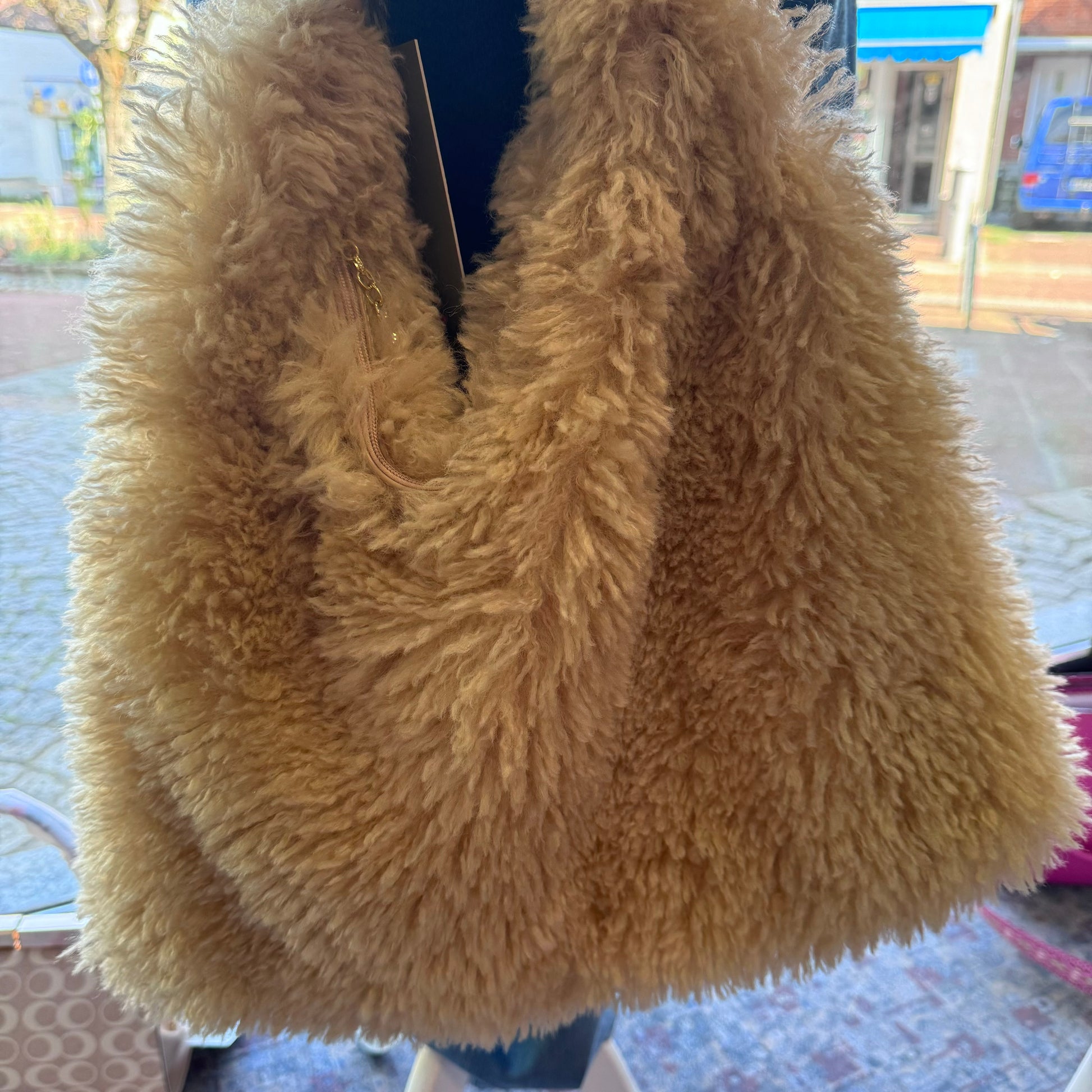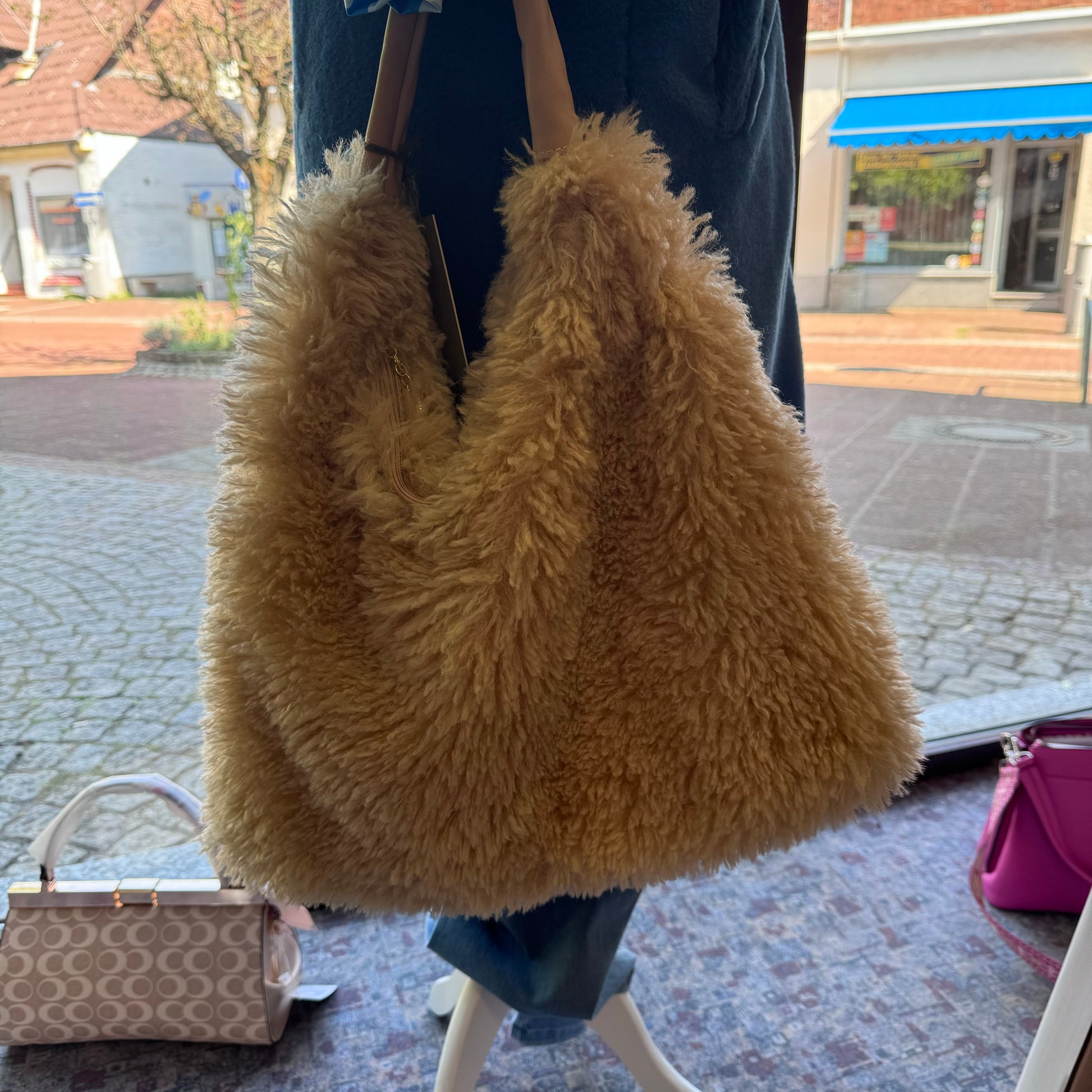 Flauschige Schultertasche in Camel