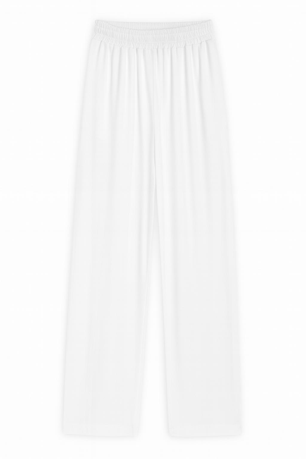 Der elastische Bund mit Zugband garantiert eine perfekte Passform und höchsten Tragekomfort. Durch die lockere Passform und den breiten Beinverlauf bietet die Hose genügend Bewegungsfreiheit, während das schlichte Design vielseitig kombinierbar ist – ob mit einer lässigen Strickjacke oder einer eleganten Bluse.