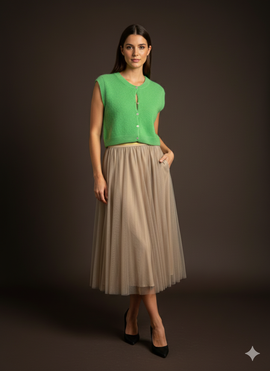 Ob über einer Bluse, einem Kleid oder ganz casual mit T-Shirt – sie bringt sofort Frische und Farbe in jedes Outfit.