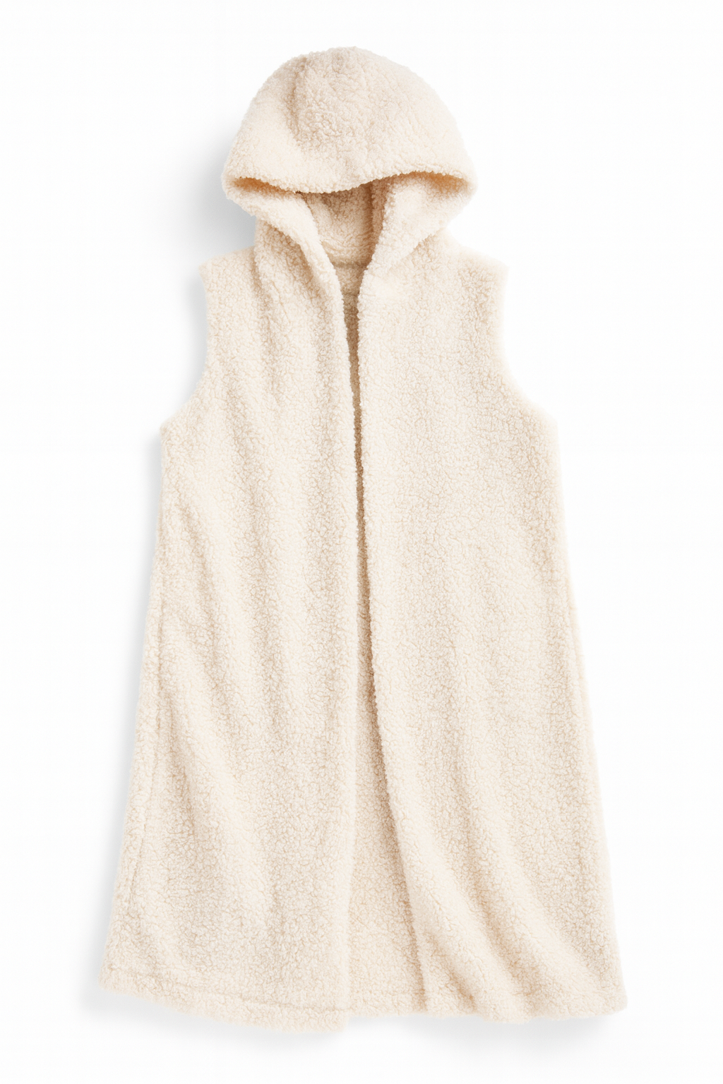 Teddifellweste in Cremeweiss, 2 seitliche Taschen, Innenansicht: Leooptik, du solltest mindestens 1,70 m für diese Weste sein.