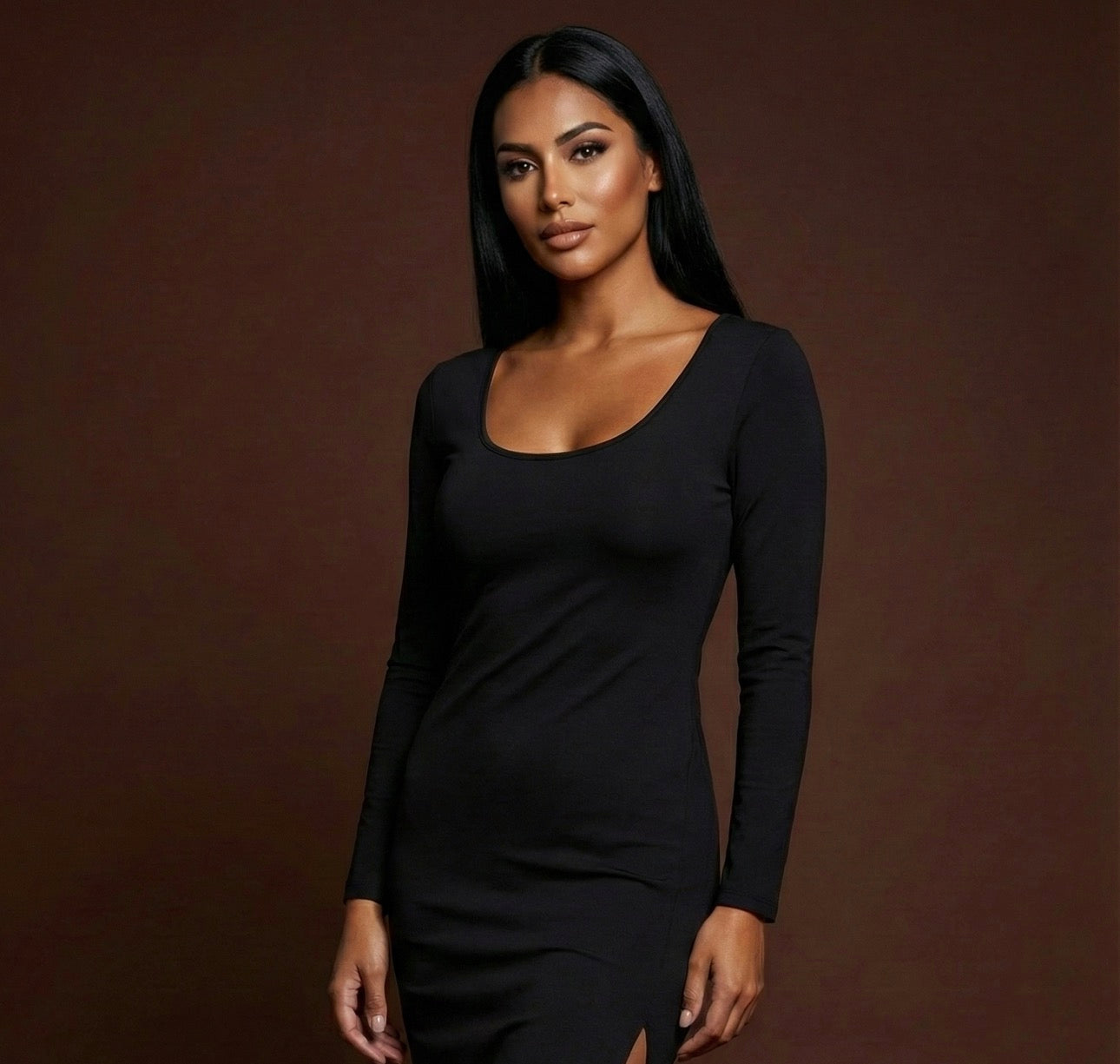 Dieses elegante figurbetonte Midi-Kleid überzeugt mit einem zeitlosen Design, femininem Rundhalsausschnitt und 3/4-langen Ärmeln. Der körpernahe Schnitt betont die Silhouette und macht das Kleid ideal für Alltag, Büro oder besondere Anlässe. Erhältlich in Weiß, Beige und Schwarz, lässt es sich vielseitig und stilvoll kombinieren.