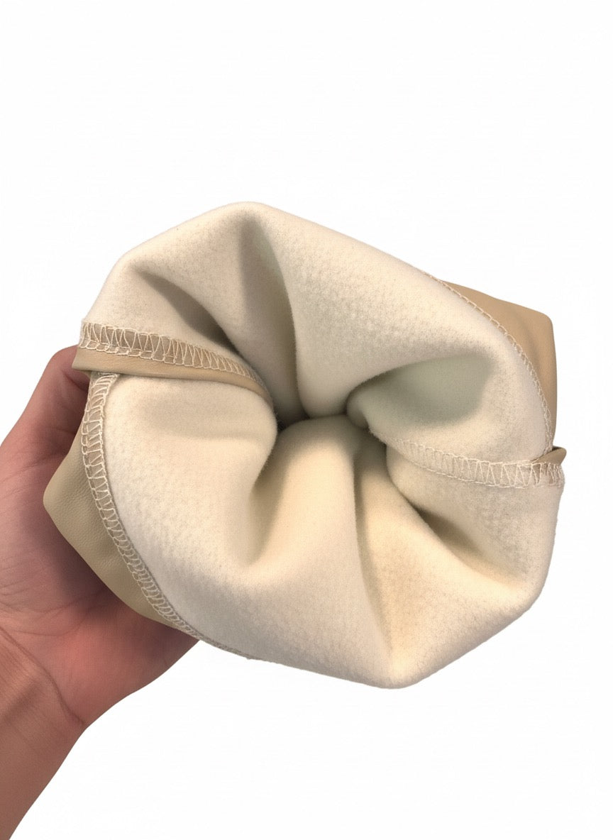 Stylische, normal geschnittene Leggings in Beige – innen weiss angeraut für extra Komfort und die kalten Tage. An den Knöcheln mit ca. 5 cm Schlitz für einen modernen Look. Material: Polyester – elastisch, bequem und bei 40° waschbar. Ein vielseitiges Basic für jeden Tag!