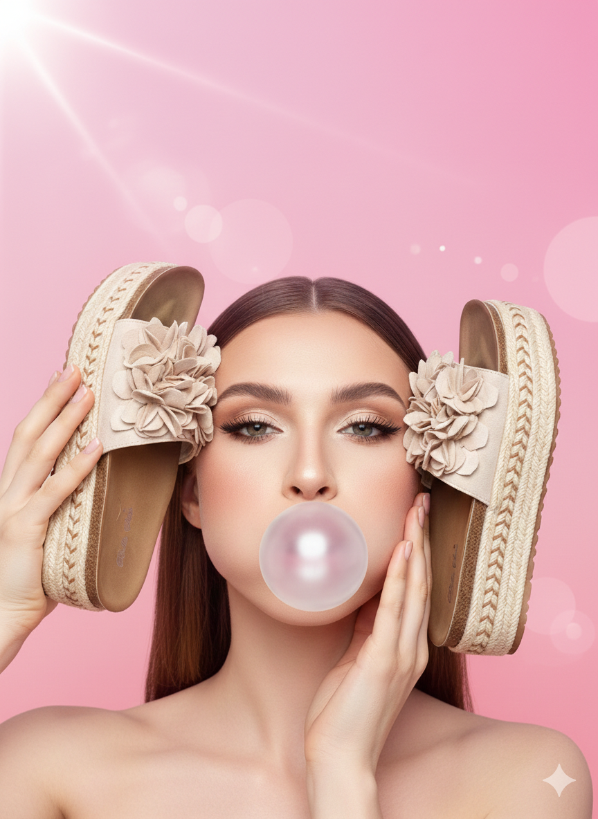 Diese stilvollen Blütensandalen vereinen Komfort und Eleganz. Die weichen, rosafarbenen Blütenapplikationen auf dem breiten Riemen verleihen einen romantischen Touch, der perfekt für sommerliche Spaziergänge oder Gartenpartys ist. Die Plateausohle bietet zusätzlichen Halt und Komfort, während die neutralen Farben eine vielseitige Kombinierbarkeit garantieren.