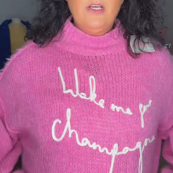 Oversize-Strickpullover „Wake me for Champagne“ 🍾💗
