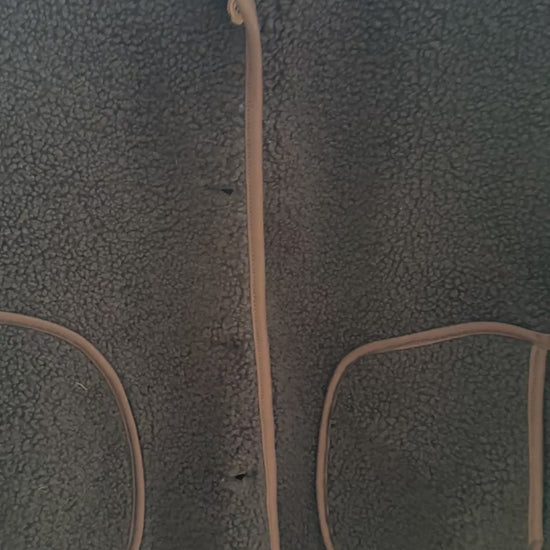 Diese stylische Weste in weicher Teddyfell-Optik ist der perfekte Begleiter für kühle Tage. Die schwarzen, flauschigen Fasern und die braunen Umrandungen sorgen für einen modernen, zugleich natürlichen Look.