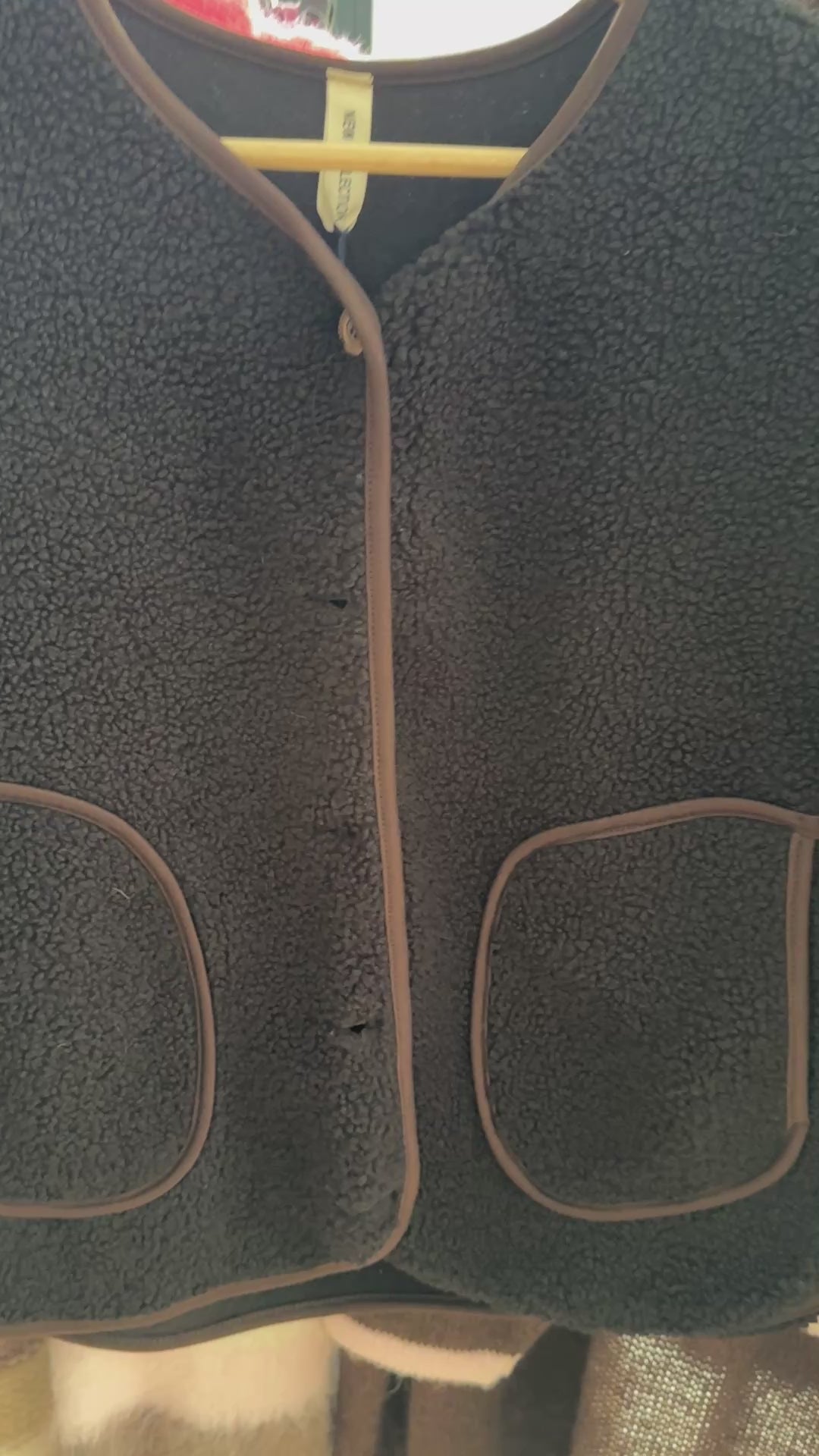 Kuschelige Teddy-Weste in Schwarz mit braunen Details