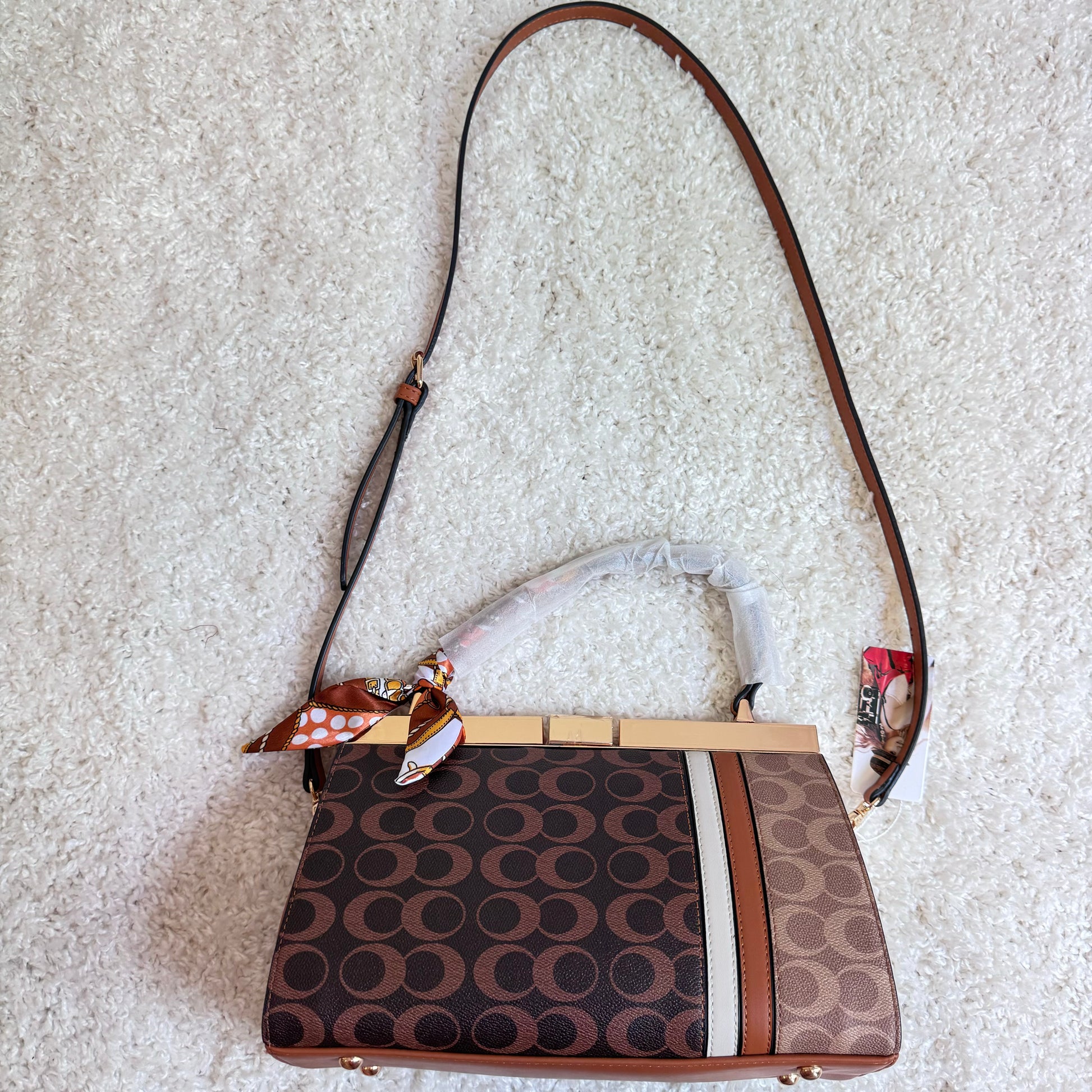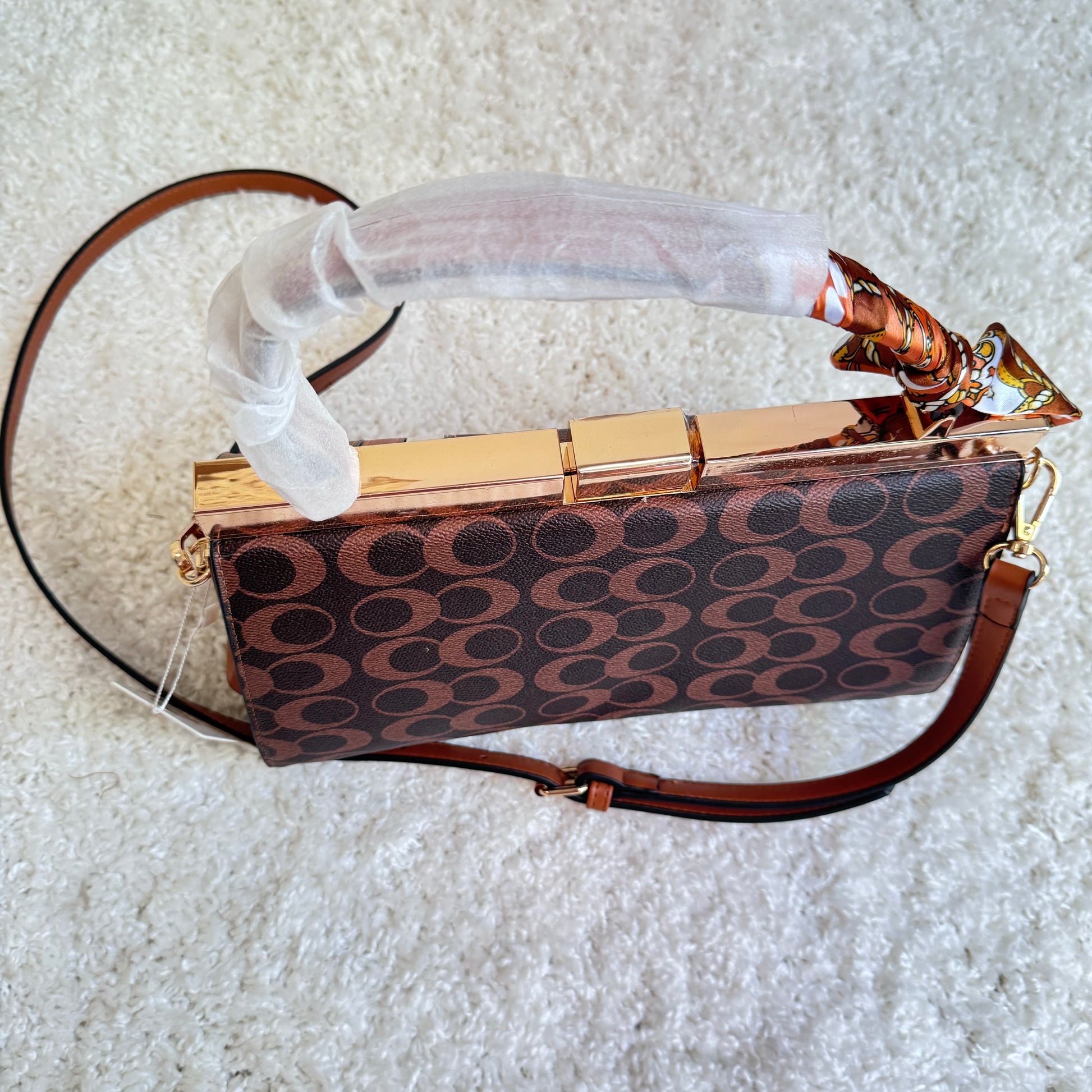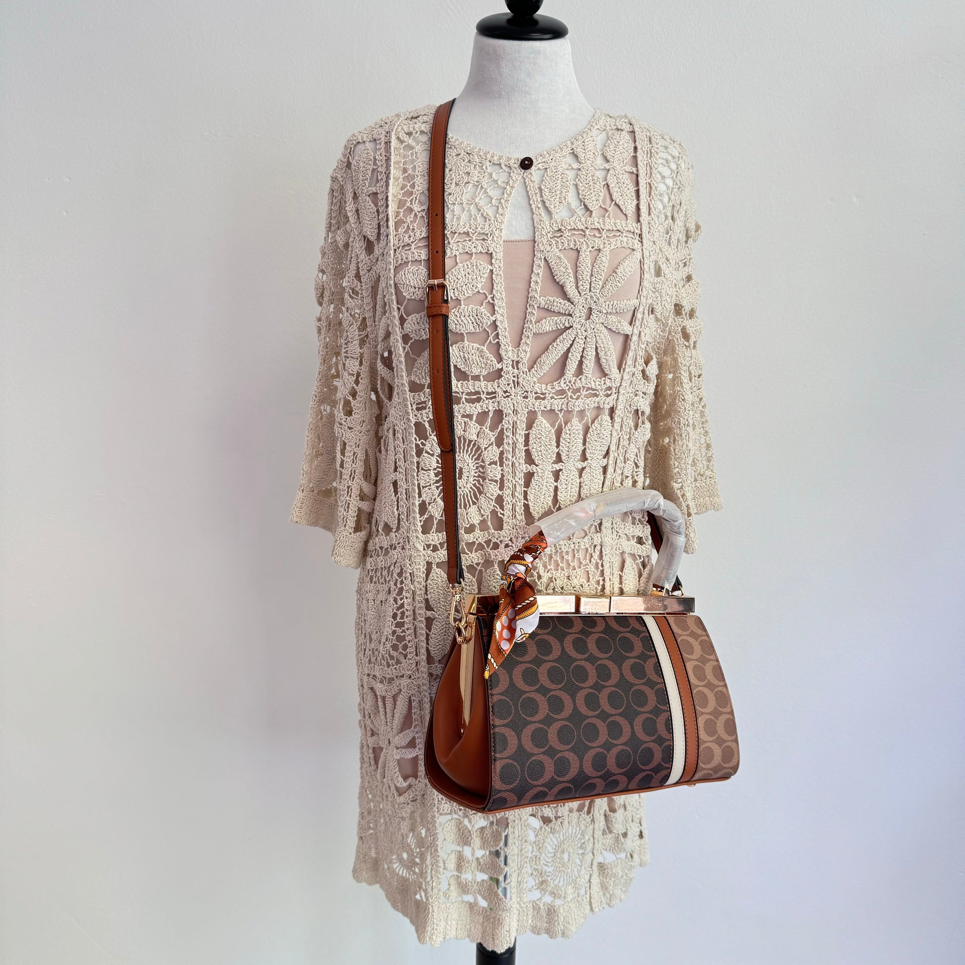 - Kurzer Griff mit Seidentuch, ideal für das Tragen in der Hand