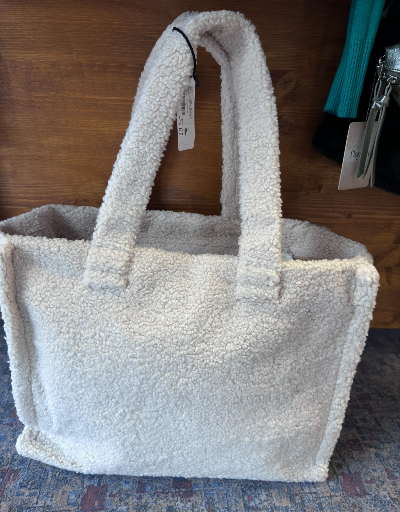 Teddyfelltasche Shopper, mit Reißverschluss, Viskose 95% und 5% Metall