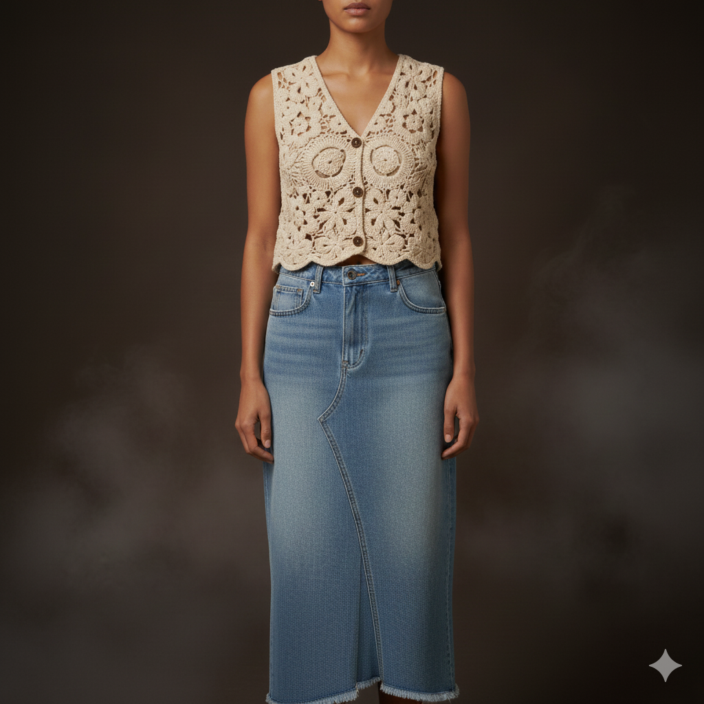 Baumwollweste in Häkeloptik