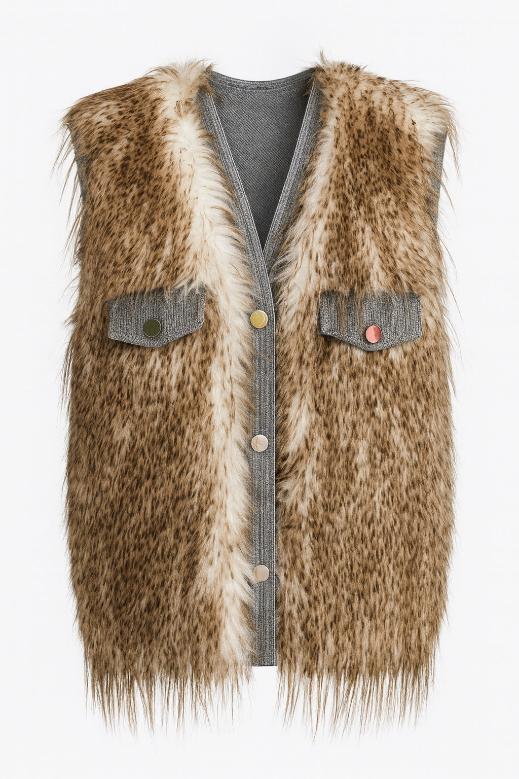 Diese Weste von s.women ist ein echter Hingucker! Der Mix aus superweichem, flauschigem Material und coolen Jeans-Details macht sie einfach besonders. Perfekt, um jedem Outfit das gewisse Etwas zu geben – egal ob über einem Hoodie, einem Strickpulli oder einer Bluse.