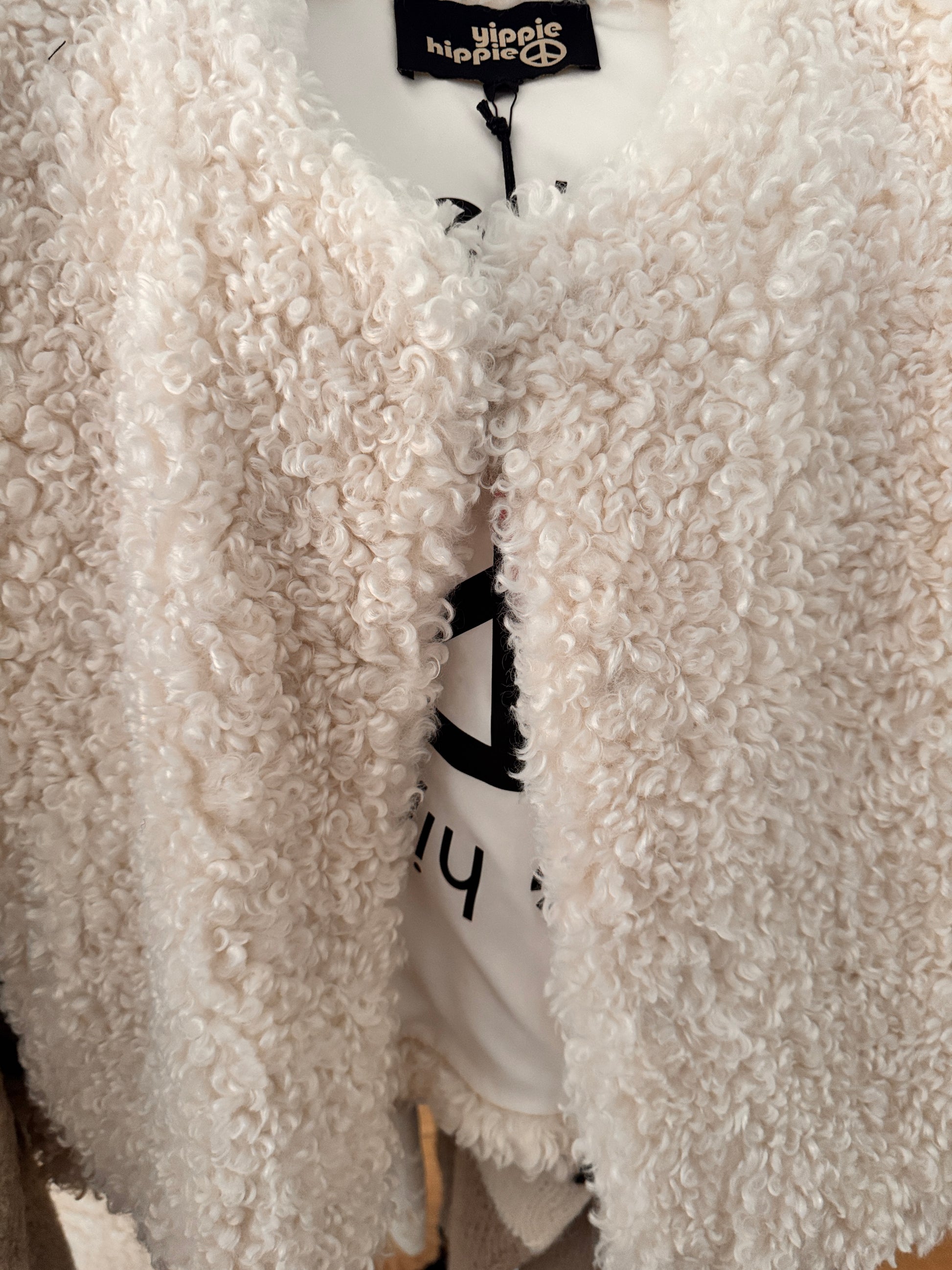 - Weißer Teddyfell-Stoff – weich, kuschelig und modisch